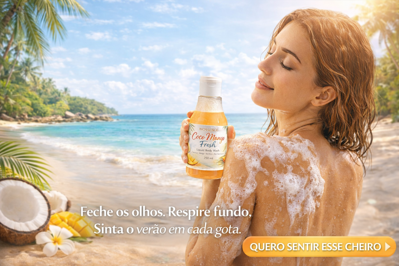 Fragrância: Coco cremoso. Manga madura. Sol na pele.